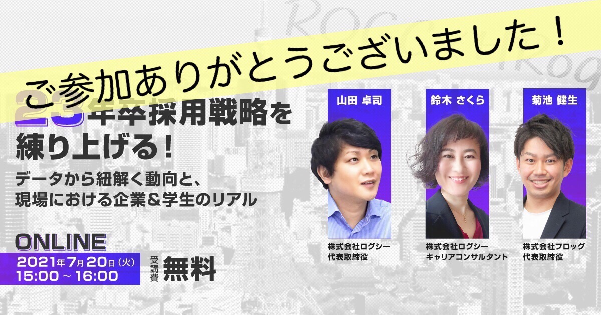 23年卒の採用活動が始まっている中、先日『23年卒採用戦略を練り上げる!』初ウェビナーを無事開催しました。ご参加くださった皆様、ありがとうございました!