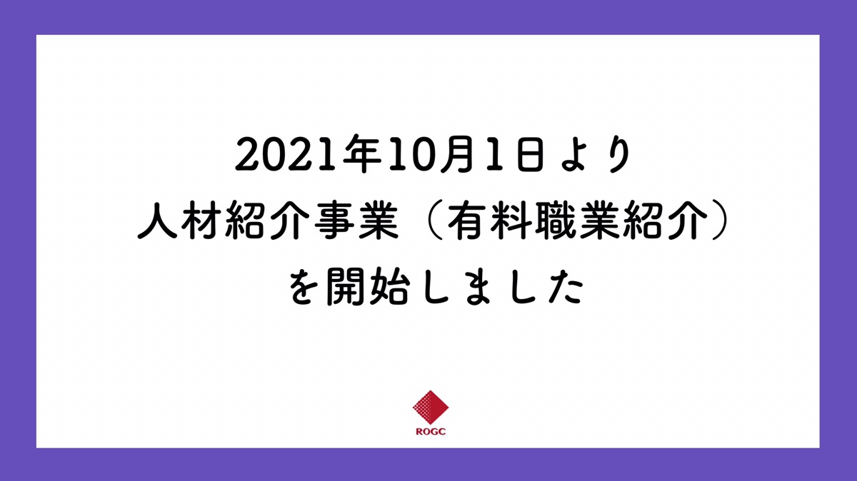 「人材採用から育成・定着まで」ワンストップでご支援する株式会社ログシー(ROGC Inc. /本社:東京都新宿区、代表取締役:山田 卓司)は、2021年10月1日(金)より、新規事業として人材紹介事業(有料職業紹介)を開始しました。