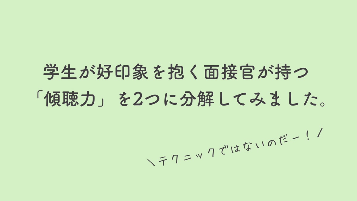 学生が好印象を抱く面接官が持つ「傾聴力」を2つに分解してみました。