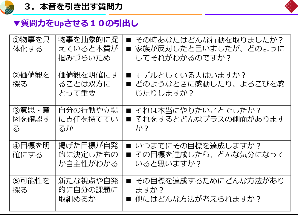 言い換えると、「この学生さんの良さは何かな?」とワクワク宝探しをする感覚に似ているかもしれません。それが、「話を引き出す」ような関わりになるでしょうし、「遮らず、最後まで聞く」ことにつながります。